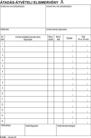 Nyomtatvany Atadas Atveteli Elismerveny 25x3 A5 B