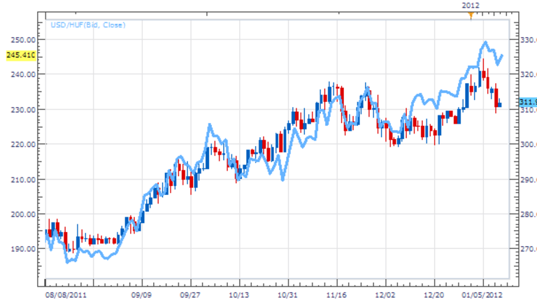 Hungarian Forint Euro Huf Eur Chart Chartoasis