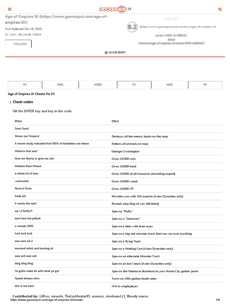 Age Of Empires Iii Cheats For Pc Macintosh Mobile Gamespot