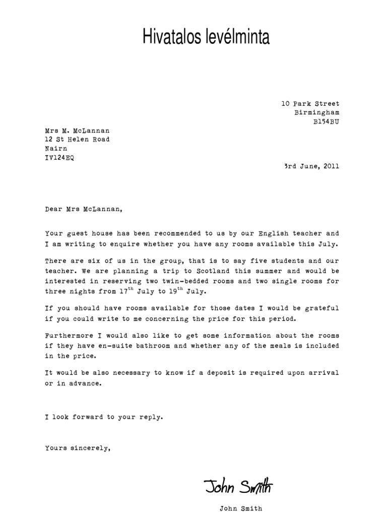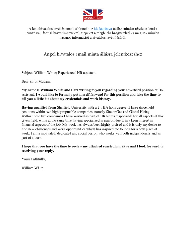 Angol Hivatalos Levél Minta