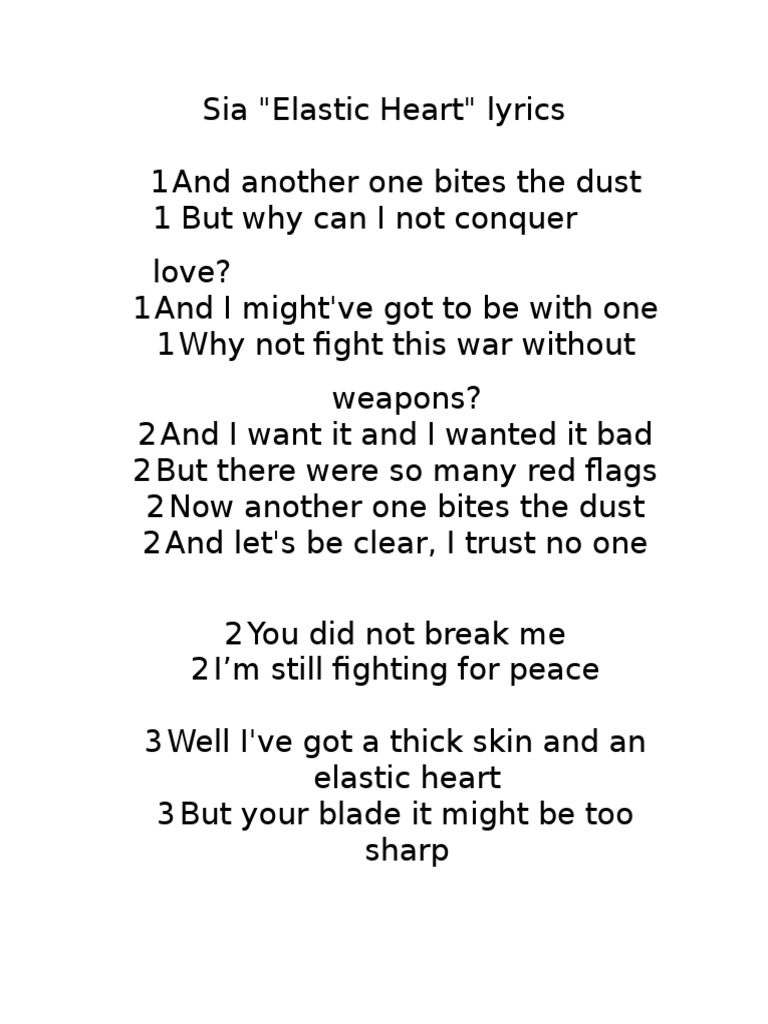 And Another One Bites The Dust Oh Why Can I Not Conquer Love Elastic Heart Sia Lyrics Elastic Heart Lyrics Elastic Heart Music Quotes Lyrics