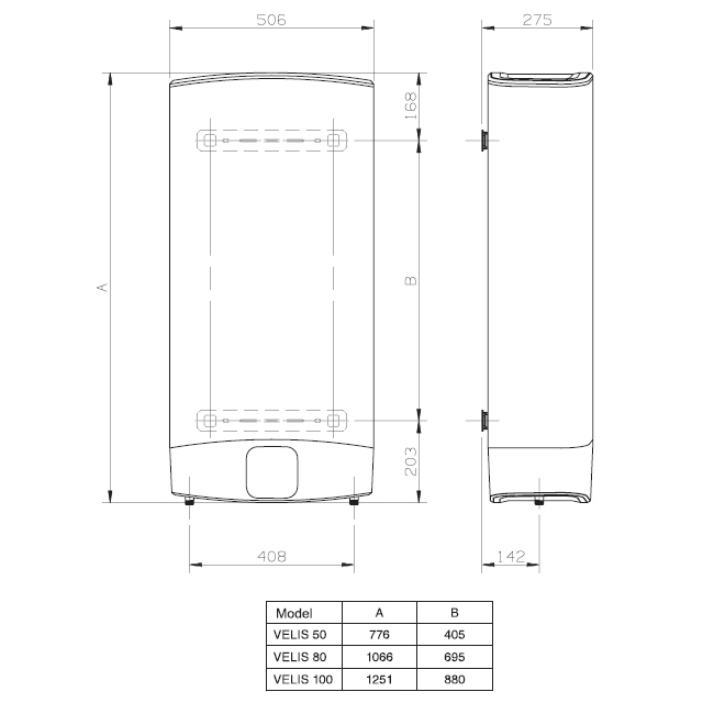 Ariston Velis Evo Plus 80 Wymiary