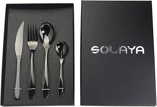 Amazon Com Black Flatware Set 5 Pcs Stainless Steel Silverware Set With Luxurious Mirror Finish Dinner Tea Spoon Steak Knife Dinner Dessert Fork Premium Cutlery Set For Gift