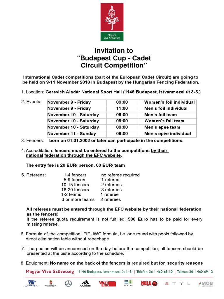 Invitation To Budapest Cup Cadet Circuit Competition Fencing Blade Weapons