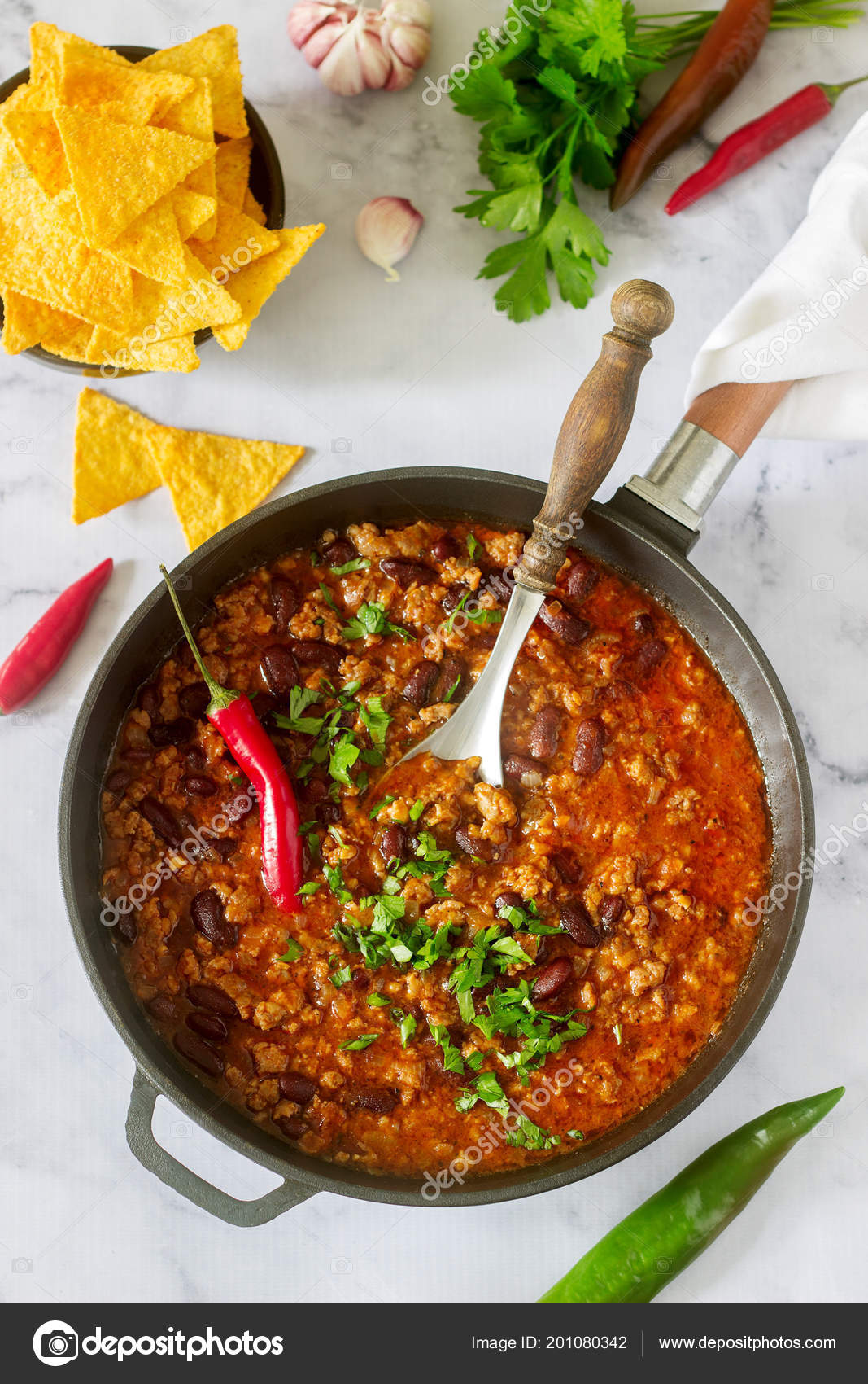 Mexican American Food Chili Con Carne Served Nachos Pepper Herbs Stock Photo C Danilovajanna 201080342