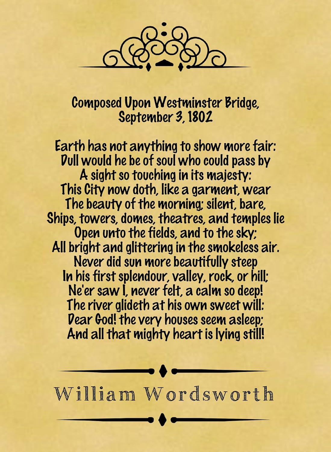 A4 Size Parchment Poster Classic Poem William Wordsworth Composed Upon Westminster Bridge Amazon Co Uk Kitchen Home