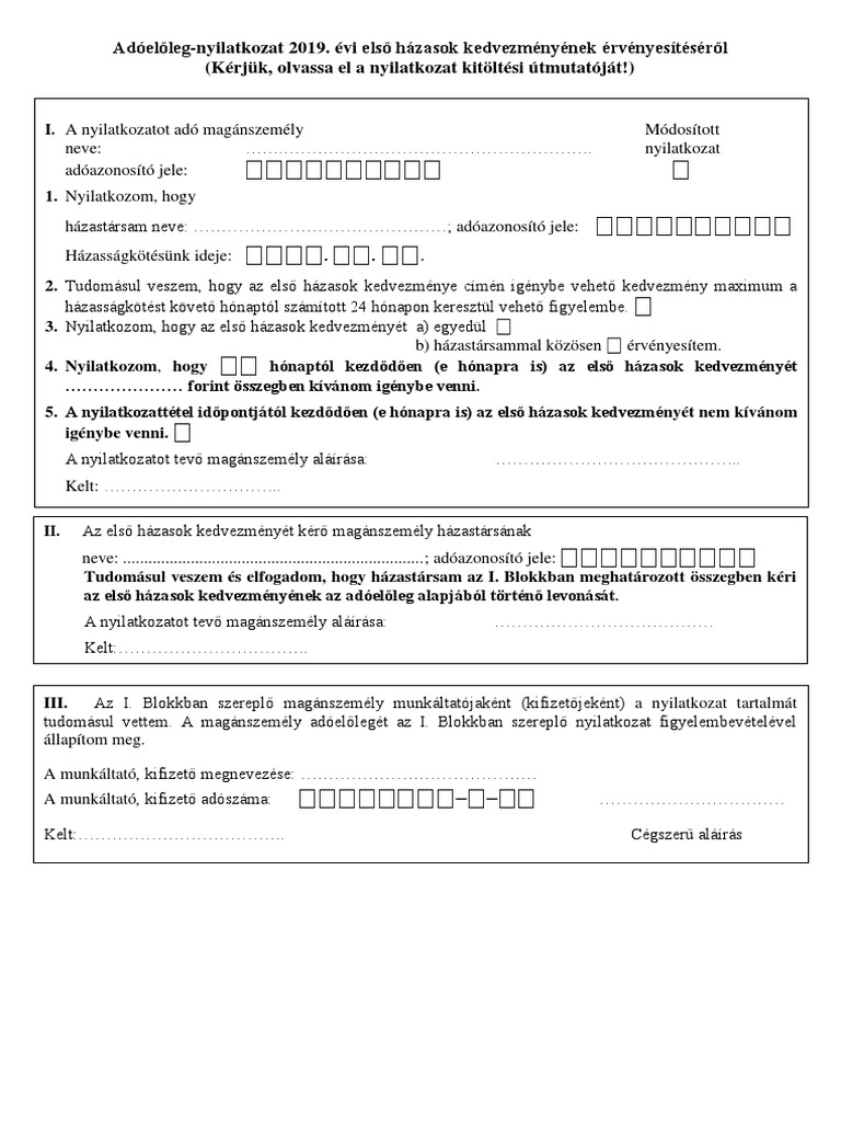 Els Hazasok Kedvezmenye Nyilatkozat 2019