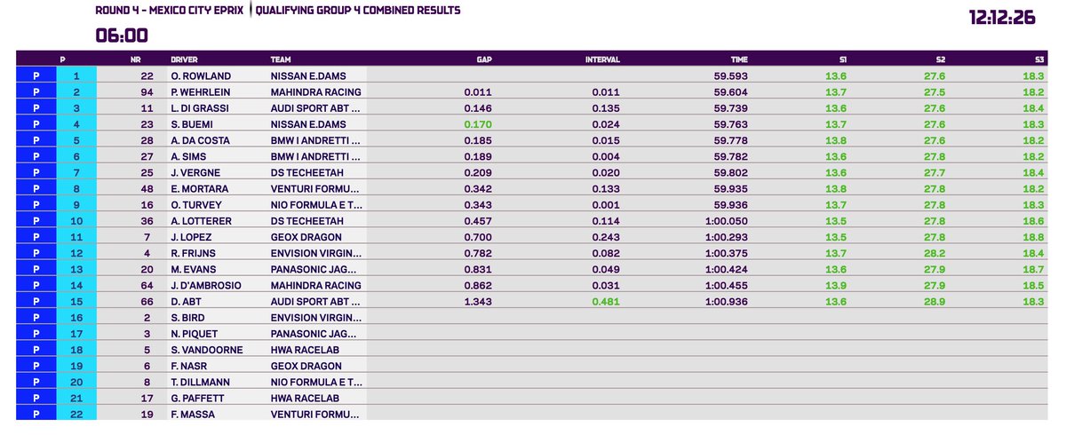 Abb Formula E On Twitter The Qualifying Groups Are Finished Next Stop Is Super Pole Follow Live Timing Here Https T Co 0uxza4c0z8 Mexicocityeprix Https T Co Xjuyzfvinh