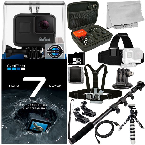 Gopro Hero7 Hero 7 Black Extreme Accessory Bundle With 32gb Microsd Led Light Kit Head And Chest Strap Tripod Carry Case And Much More Walmart Com Walmart Com