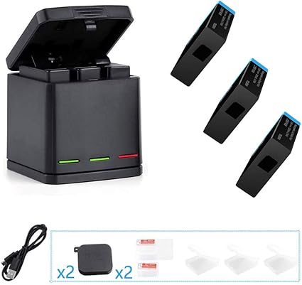 Amazon Com Telesin 3 Pack Replacement Batteries And Triple Charger Compatible For Gopro Hero 8 Hero 7 Black Hero 6 Hero 5 Black Camera With Accessories Lens Cover Lens Protector Film Battery Cases