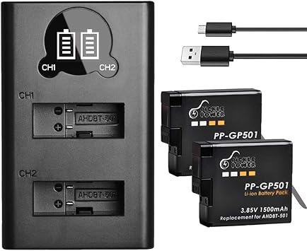 Amazon Com Pickle Power Replacement For Gopro Hero 7 Batteries X2 And Dual Led Usb Charger For Gopro Hero 5 Black Ahdbt 501 Hero 2018 Hero 6 Hero 7 Black Fully Compatible With Original Camera Photo
