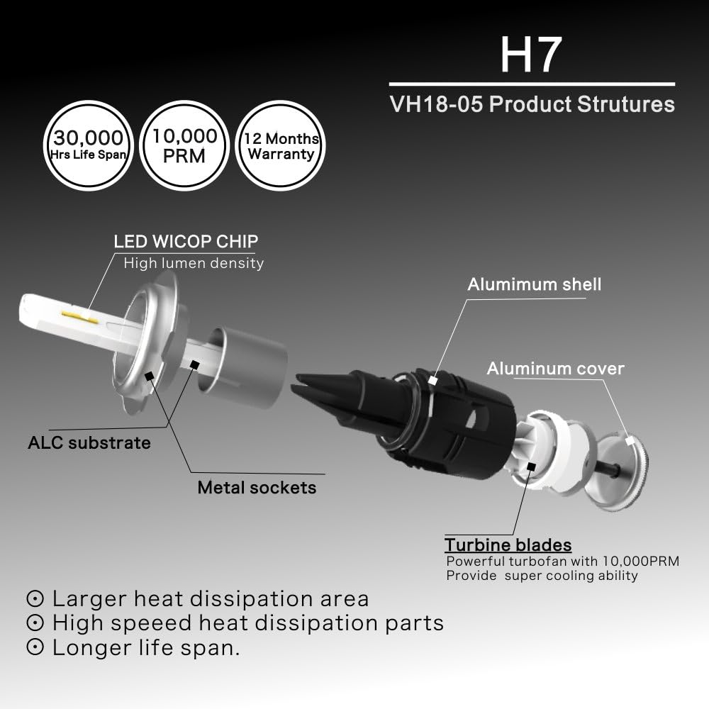 Amazon Com Eto H7 Led Headlight Bulbs Conversion Kit With Seoul Csp 24w 3600lm 6000k Cool White No Black Spots 2 Packs 1 Year Warranty Automotive