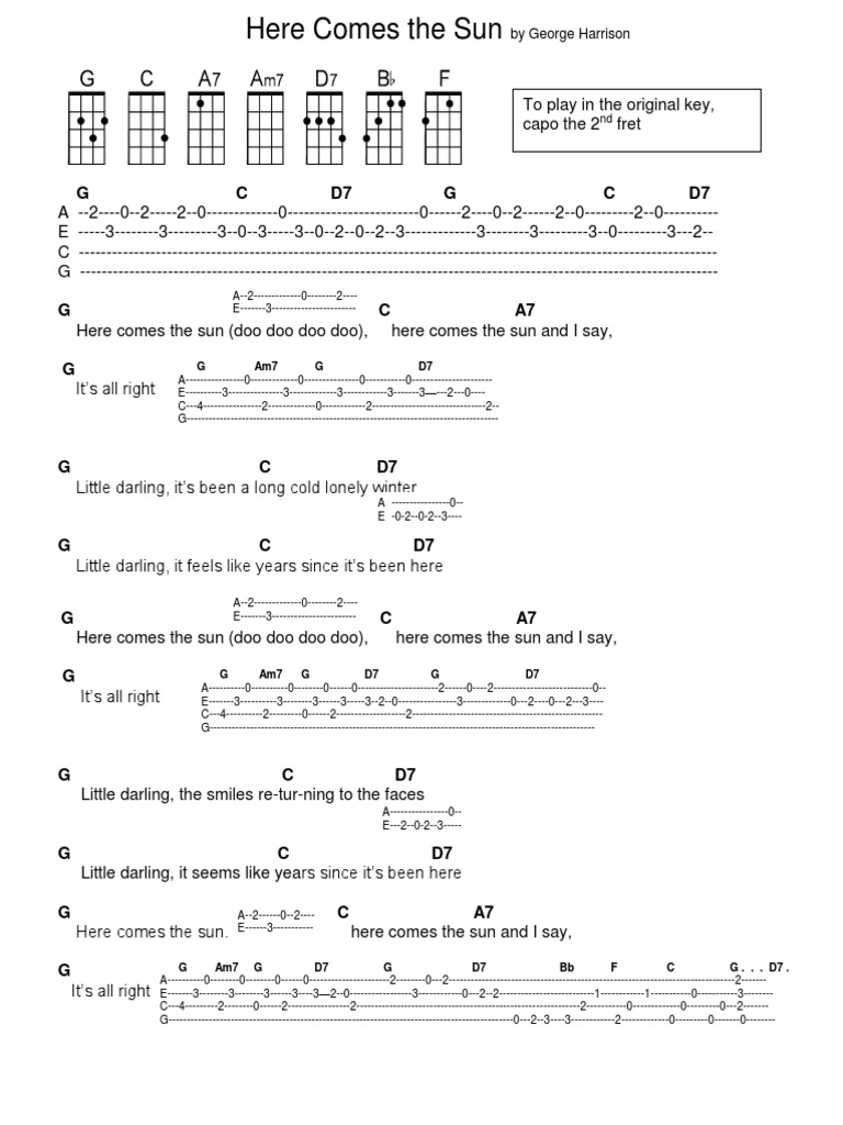 Here Comes The Sun Sheet Music The Beatles Ukulele Chords Lyrics
