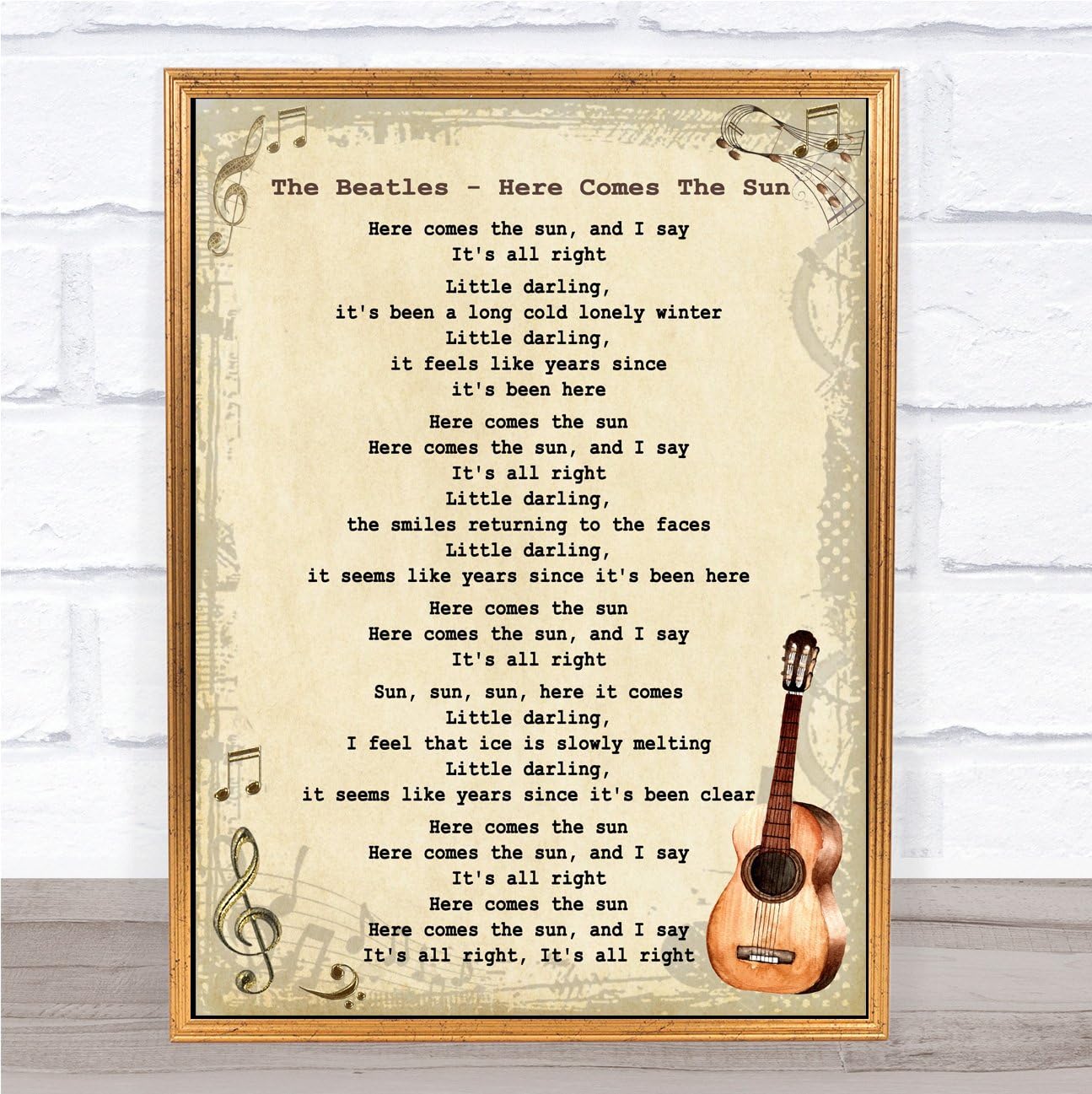 Amazon Com Here Comes The Sun Song Lyric Vintage Quote Print Office Products