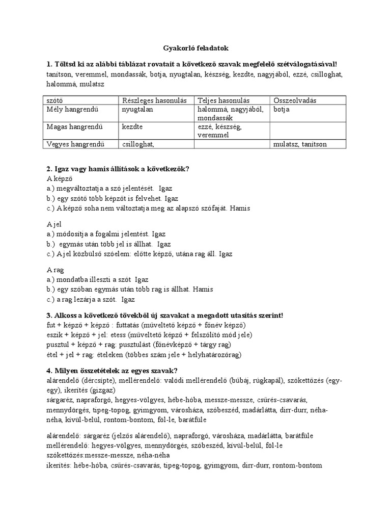 Képző Jel Rag Gyakorló Feladatok 5 Osztály