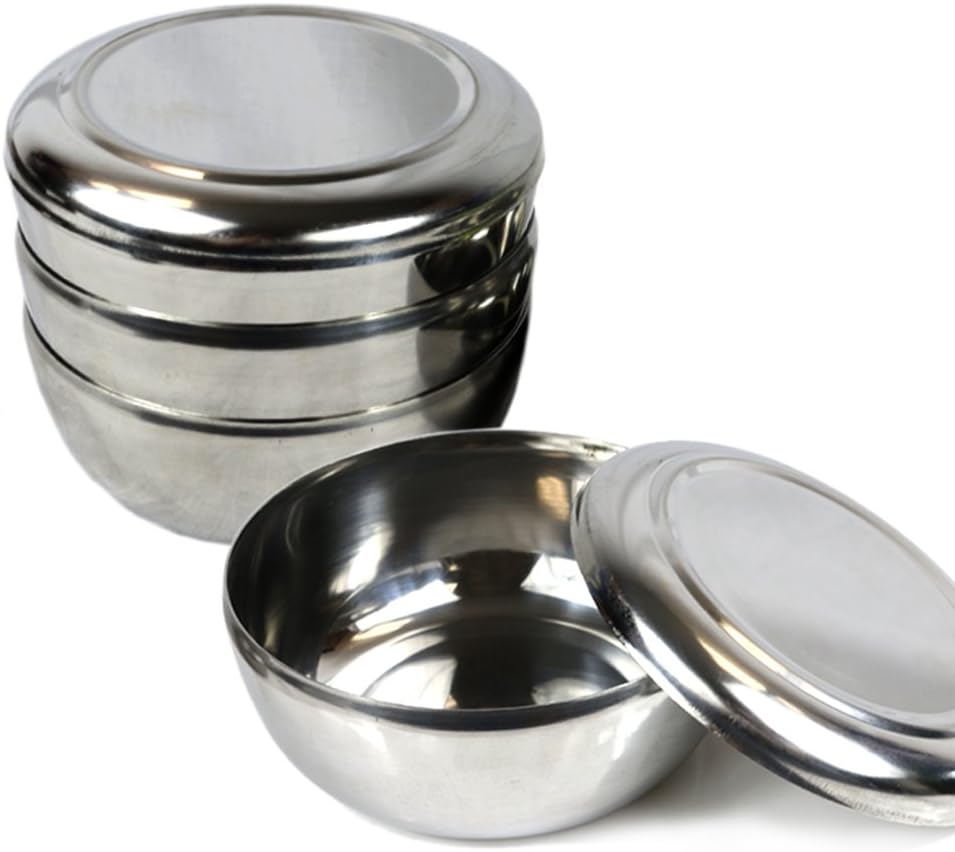Amazon Com Set Of 4 Stainless Steel Korean Traditional Rice Bowl With Lid Hygienic Sanitary Dish Korean Kitchen Restaurant Rice Bowls