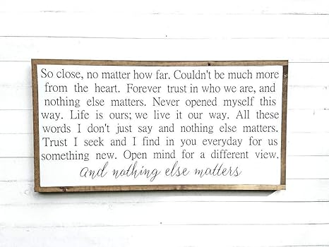 Amazon Com Flowershave357 And Nothing Else Matters Wood Sign Metallica Wooden Sign Framed So Close Sign Farmhouse Style Wedding Song Everything Else