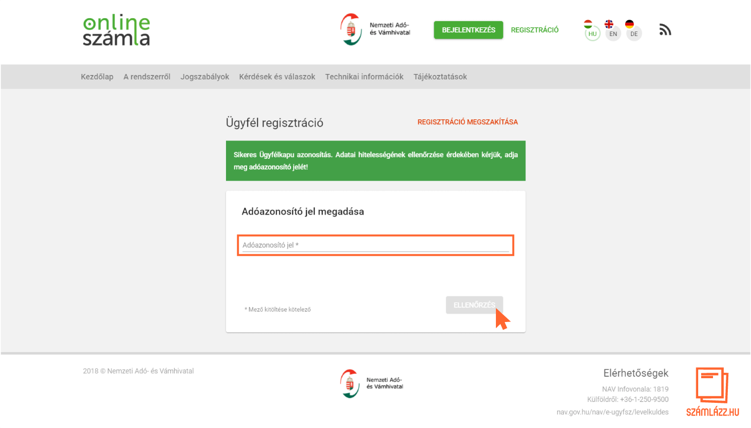 Nav Online Szamlazas Regisztracios Segedlet Szamlazz Hu