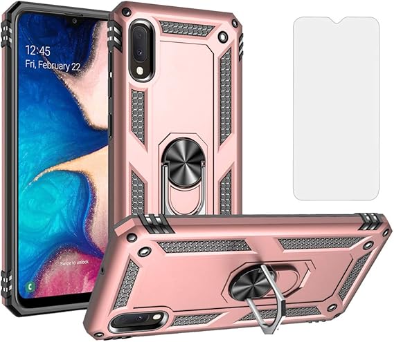 Amazon Com Phone Case For Samsung Galaxy A10e Cases With Tempered Glass Screen Protector Ring Holder Stand Glaxay 10ae Ea10 10e E10a A 10 E Shockproof Back Cover Pink Electronics