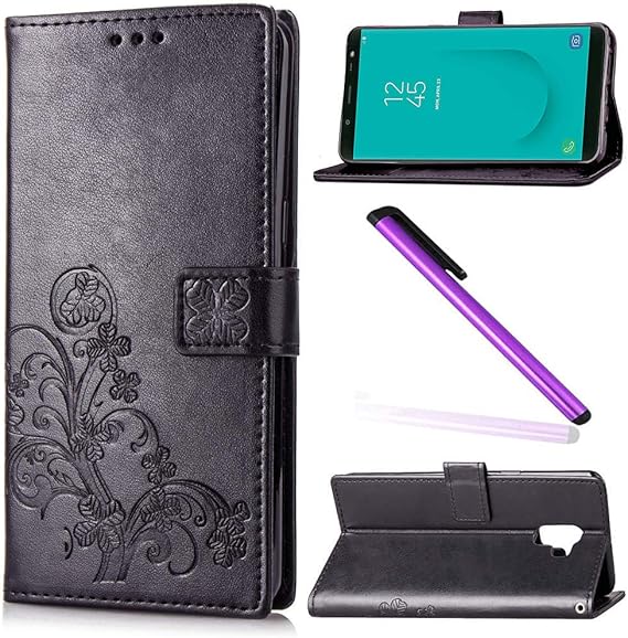 Amazon Com Samsung Galaxy J6 2018 Cover Case Emaxeler Stylish Colour Embossing Kickstand Credit Cards Slot Cash Pockets Pu Leather Flip Wallet For Samsung Galaxy J6 2018 Version Clover Black