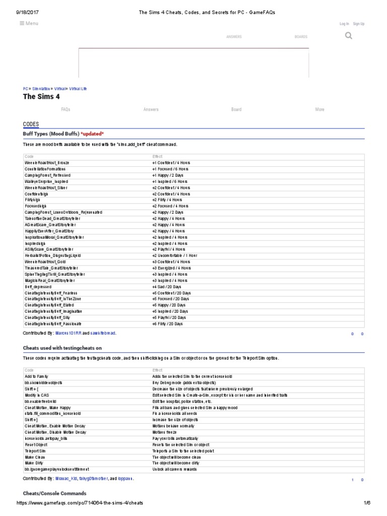 The Sims 4 Cheats Codes And Secrets For Pc Gamefaqs Cheating In Video Games Leisure
