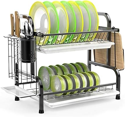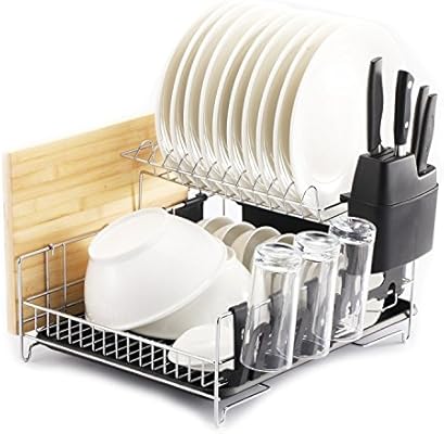 Ispecle Dish Drying Rack 304 Stainless Steel 2 Tier Dish Rack With Utensil Holder Cutting Board Holder And Dish Drainer For Kitchen Counter Amazon Sg Home