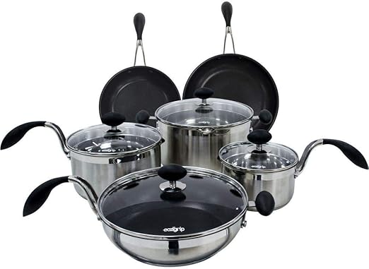Amazon Com Eazigrip 10 Piece Non Stick Stainless Steel Cookware Set Kitchen Dining
