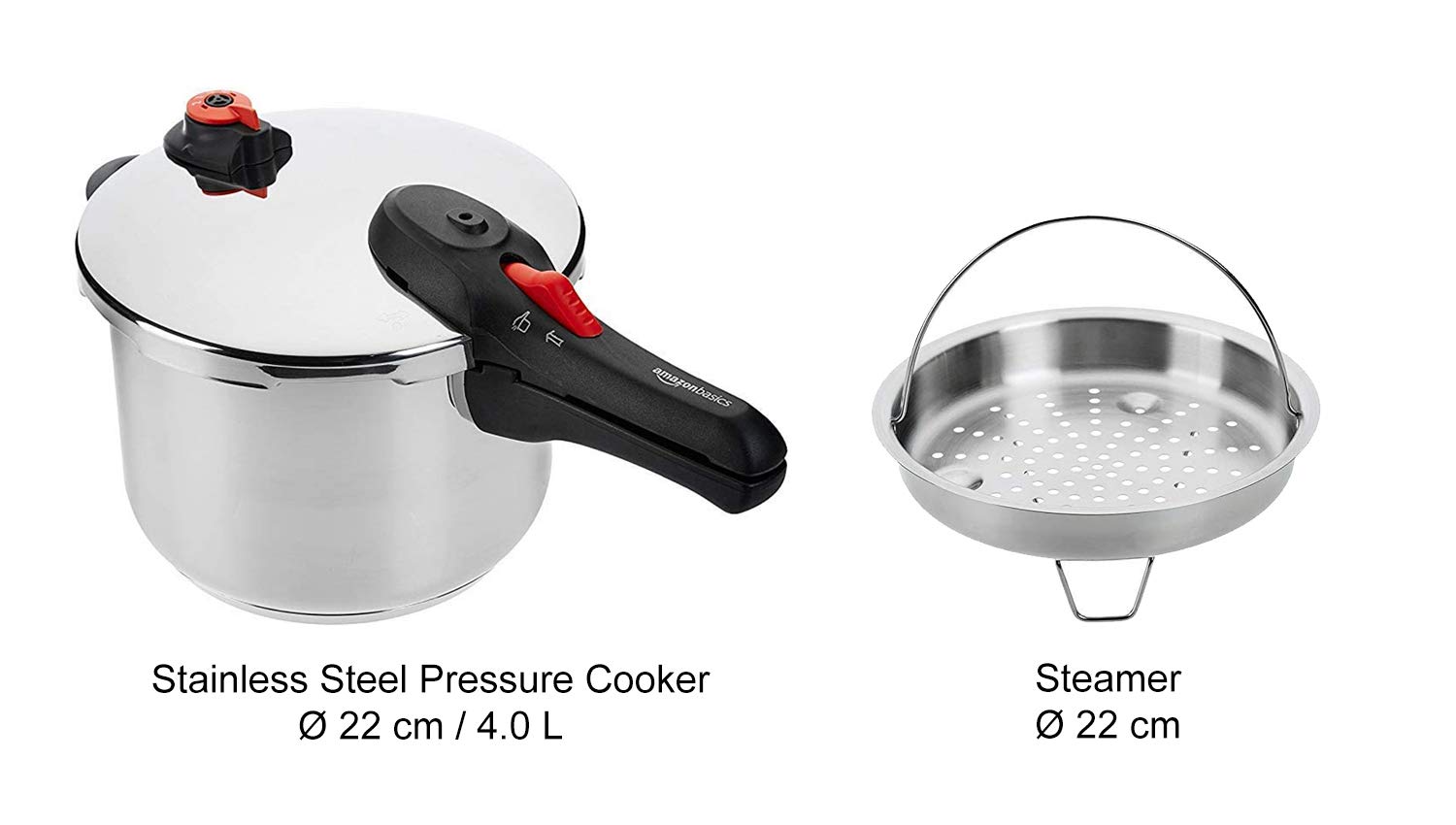 Amazonbasics Stainless Steel Pressure Cooker 6 Litre With Steamer Amazon Co Uk Kitchen Home