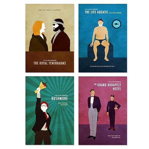 Amazon Com Wes Anderson Minimalist Movie Poster Set Rushmore The Grand Budapest Hotel The Royal Tenenbaums Life Aquatic With Steve Zissou Unframed Print Office Decor Home Decor Cafe Decor Handmade