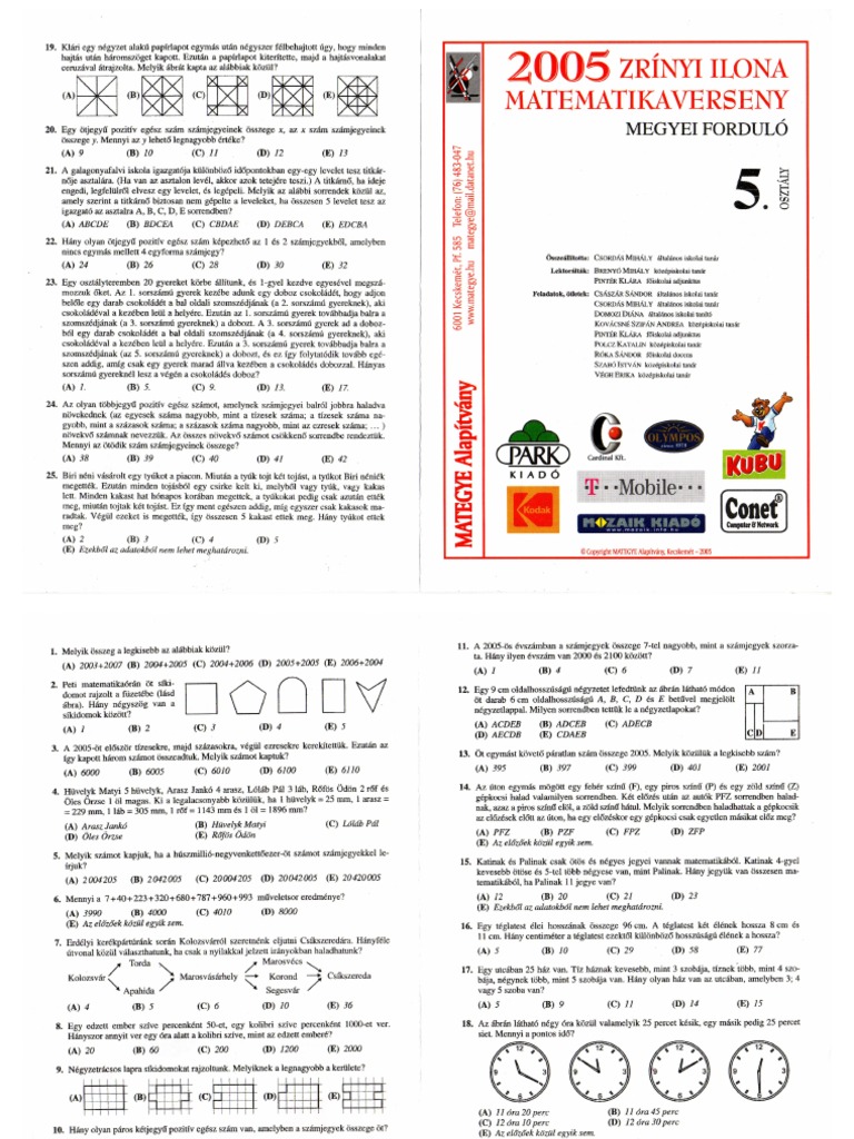 Zrinyi Ilona Matematika Verseny Feladatok 5 Osztaly 2005